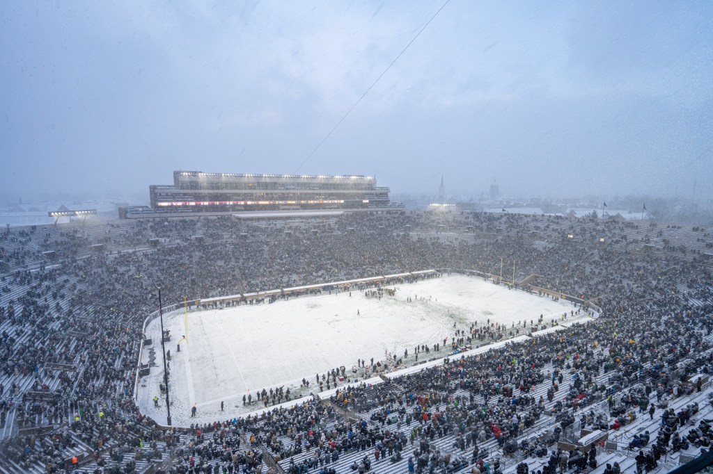 There’s no other sport where a snowstorm would be welcomed with a raucous cheer from the crowd that matched anything that happened on the field. Baseball cancels games because of rain, but college football? Bring on the snow, baby. Is the weather not fit to drive in? Snap that football. Can’t see the scoreboard, the play clock, the sideline? Just run the darn ball. Despite it making the actual sport much harder to play, snow just lends an extra bit of magic to a football game.