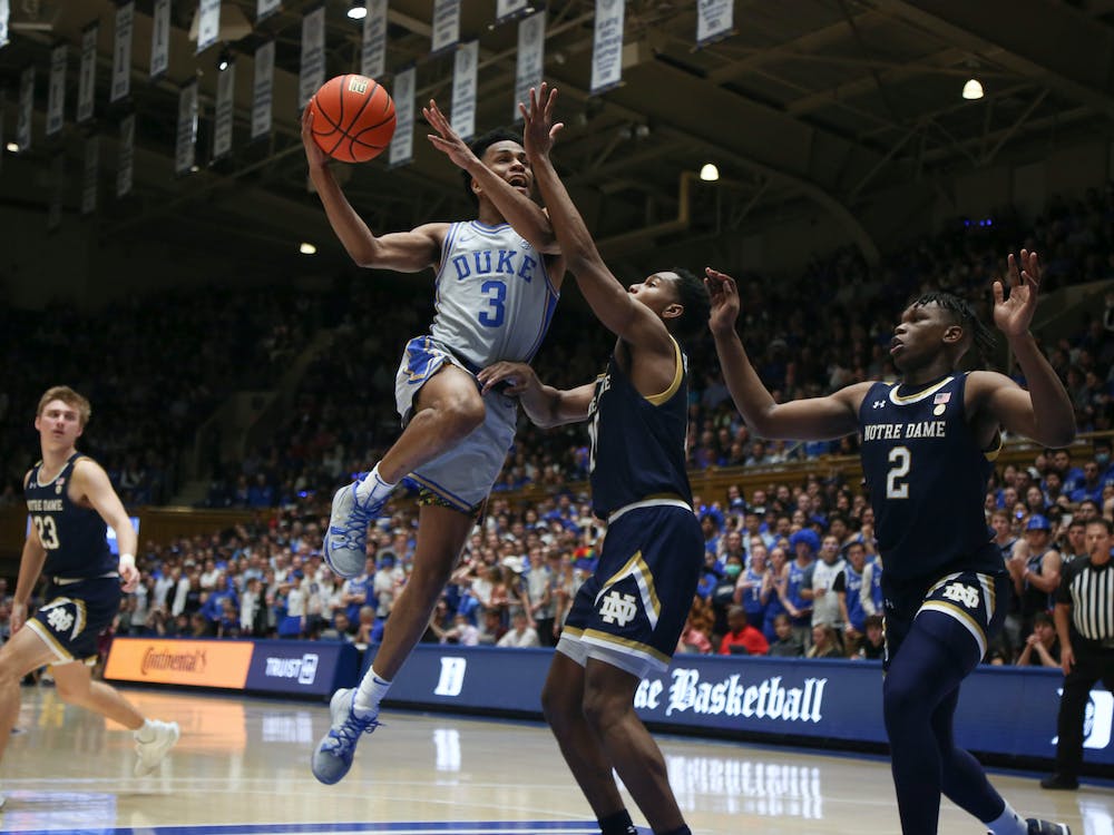 Quickly, a scene setter — there’s about 35 seconds to play in Cameron Indoor Stadium, Mike Brey visiting the arena where he got his start as a college coach for the final time. Notre Dame’s star freshman JJ Starling just got the Irish to within one, on the verge of feel-good upset that, no, wouldn’t have mattered for the teams long term prospects in the slightest, but might have given Brey and his veteran team a rung to hang their hat on as they play out the closing stanza of a thoroughly underwhelming year. But first, Duke has the basketball. Up one, in the bonus, just about five more seconds of game time than the shot clock.